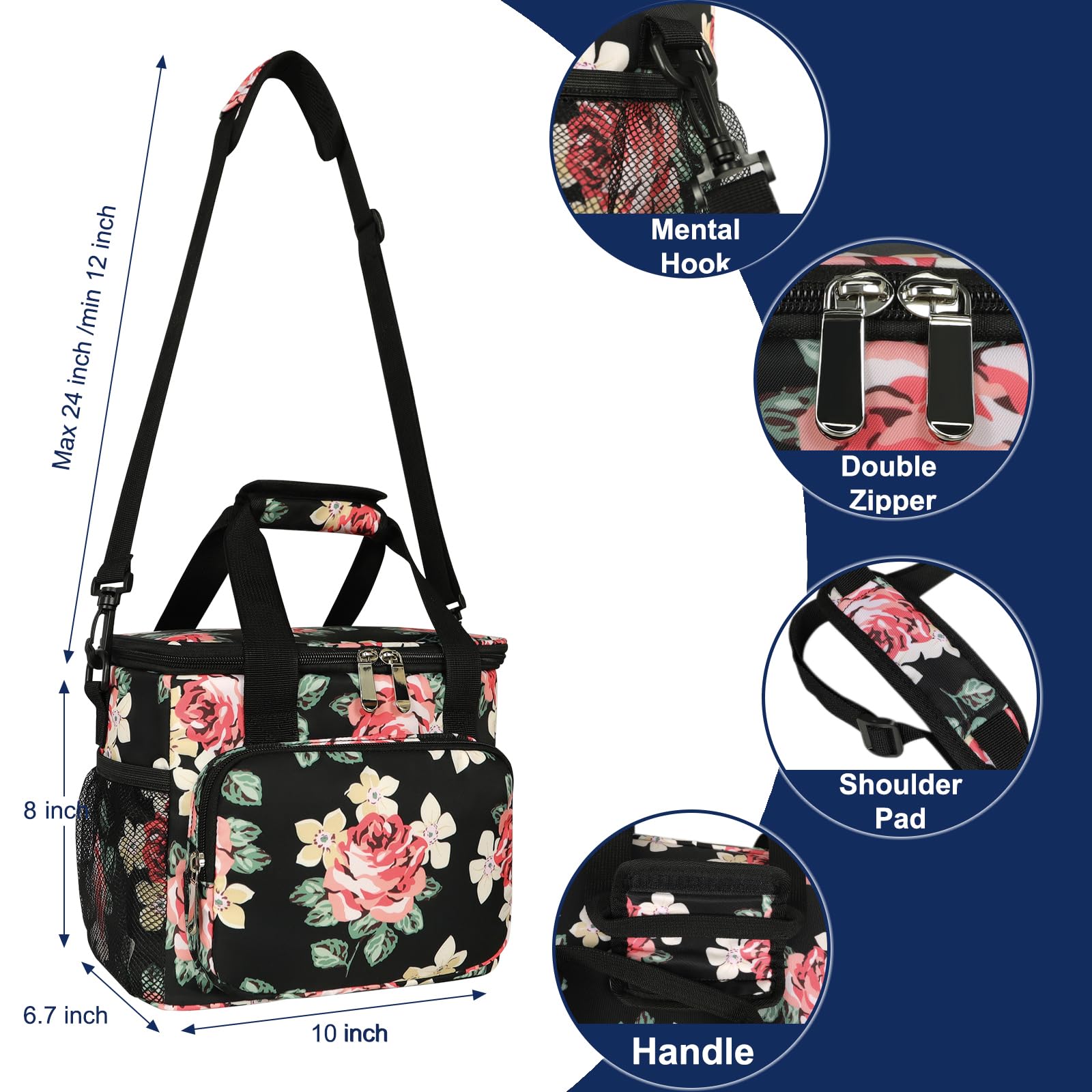 - 【Pay more attention to quality】: PU oxford fabric + EPE foam insulation + PEVA inner layer make our lunch bag products can keep food stay cold/hot/fresh (over six hours as a whole). The heat-pressed stitching technology of PEVA material makes the product have better waterproof and leak-proof function.